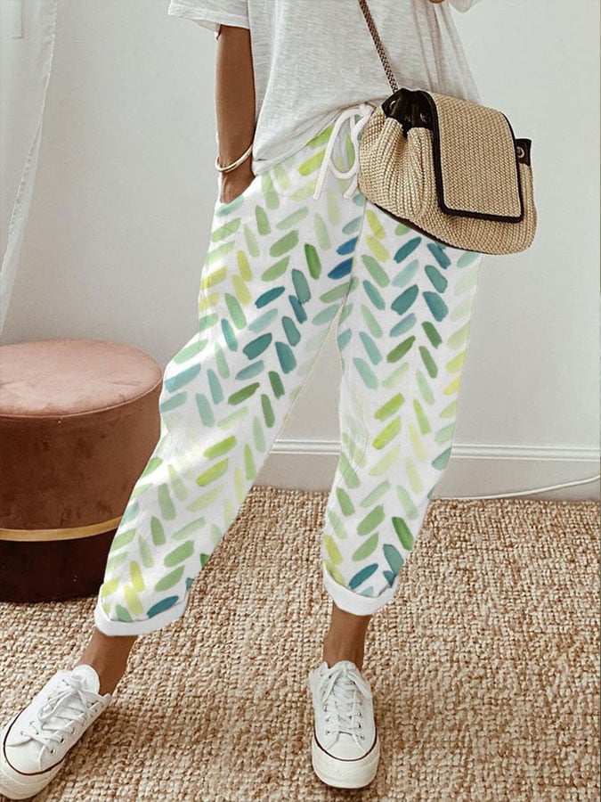 Women's Vintage Print Elastic Waist Casual Pants