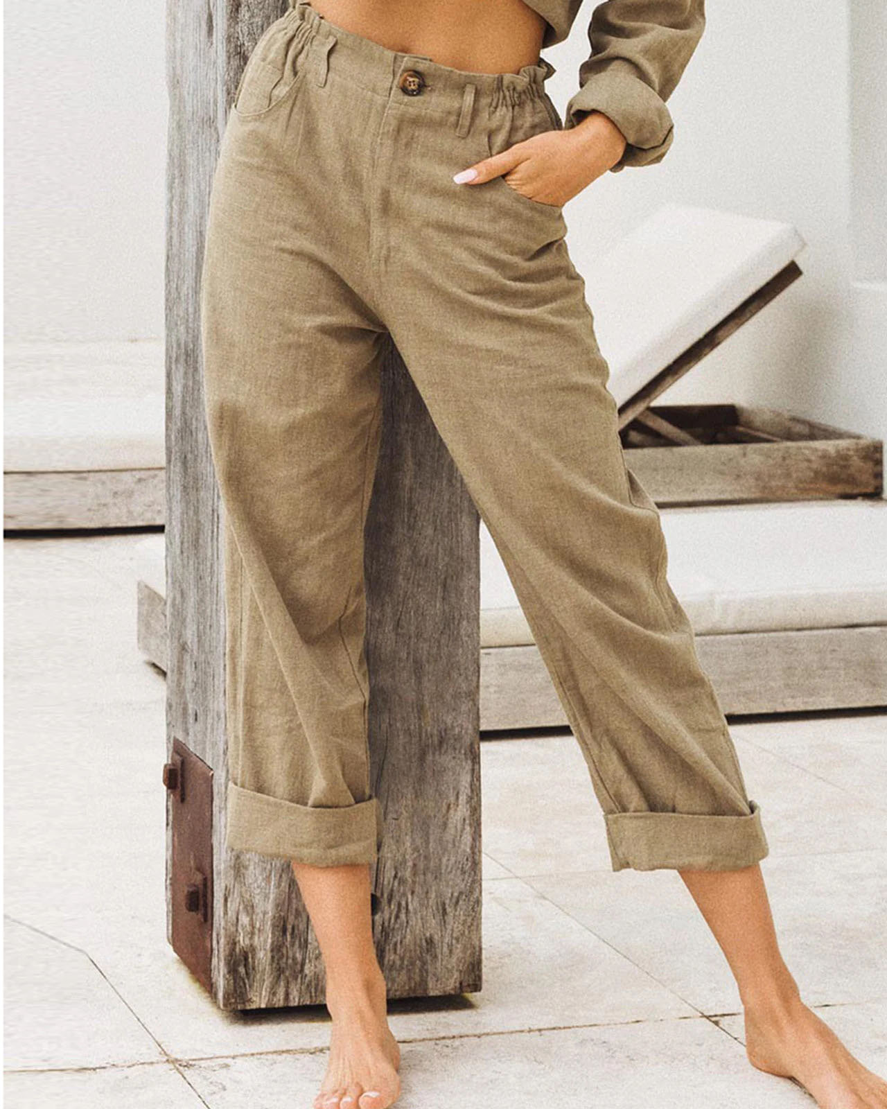 Ladies cotton linen high waist slim casual harem pants