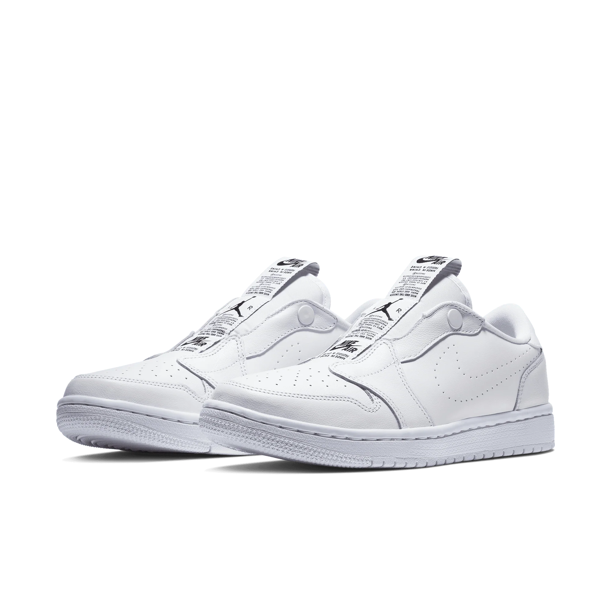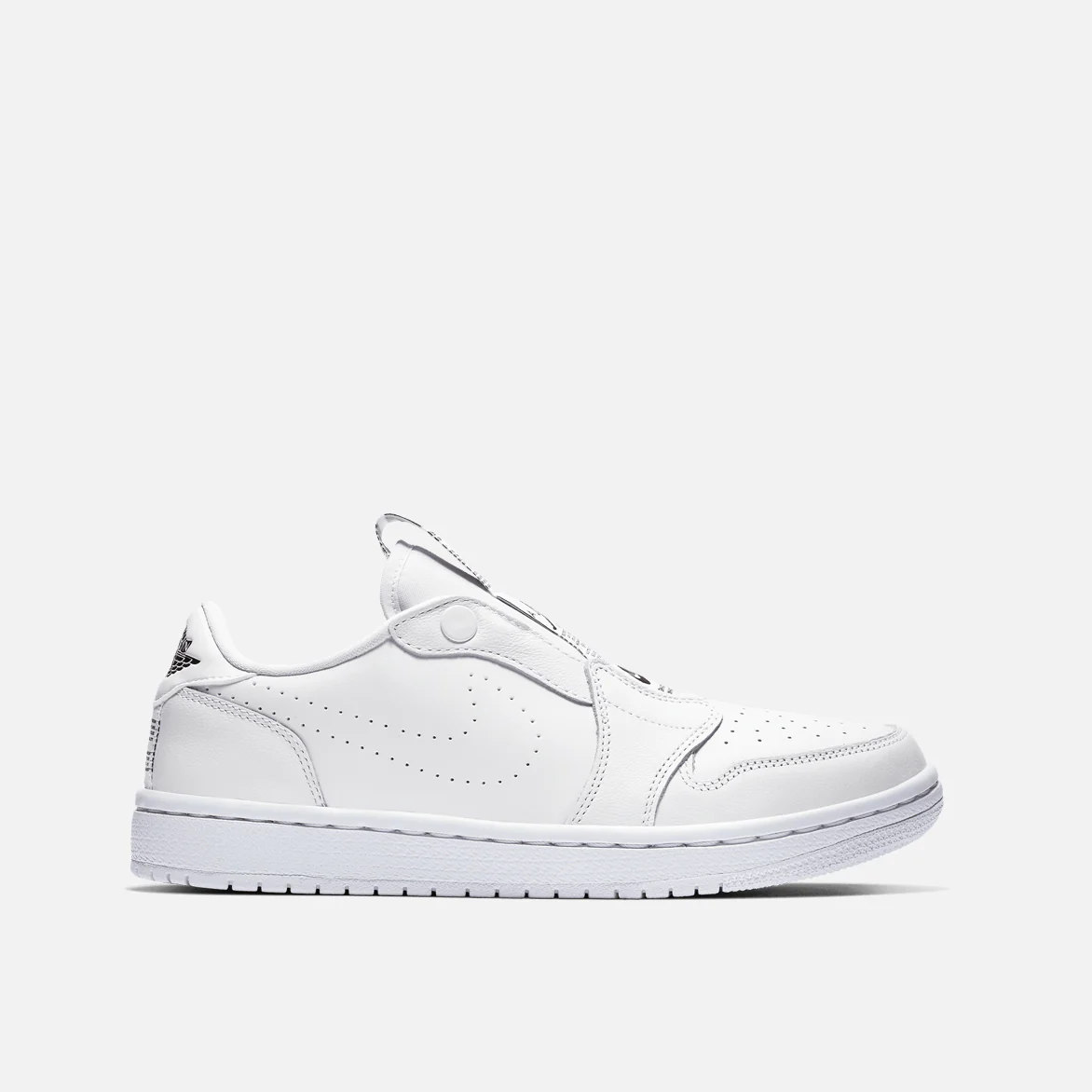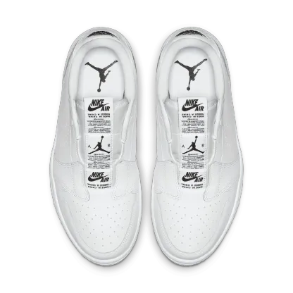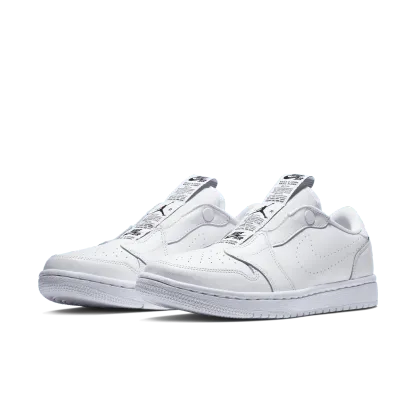 The Wmns Air Jordan 1 Low Slip 'White' is a slip-on take on Michael Jordan's first signature shoe. A women's shoe, the laceless design includes a series of branded tags down the tongue, with a perforated Swoosh on the side wall and a 'Wings' logo on the heel. Underfoot, a white Air midsole provides cushioning, giving way to a concentric outsole for traction.