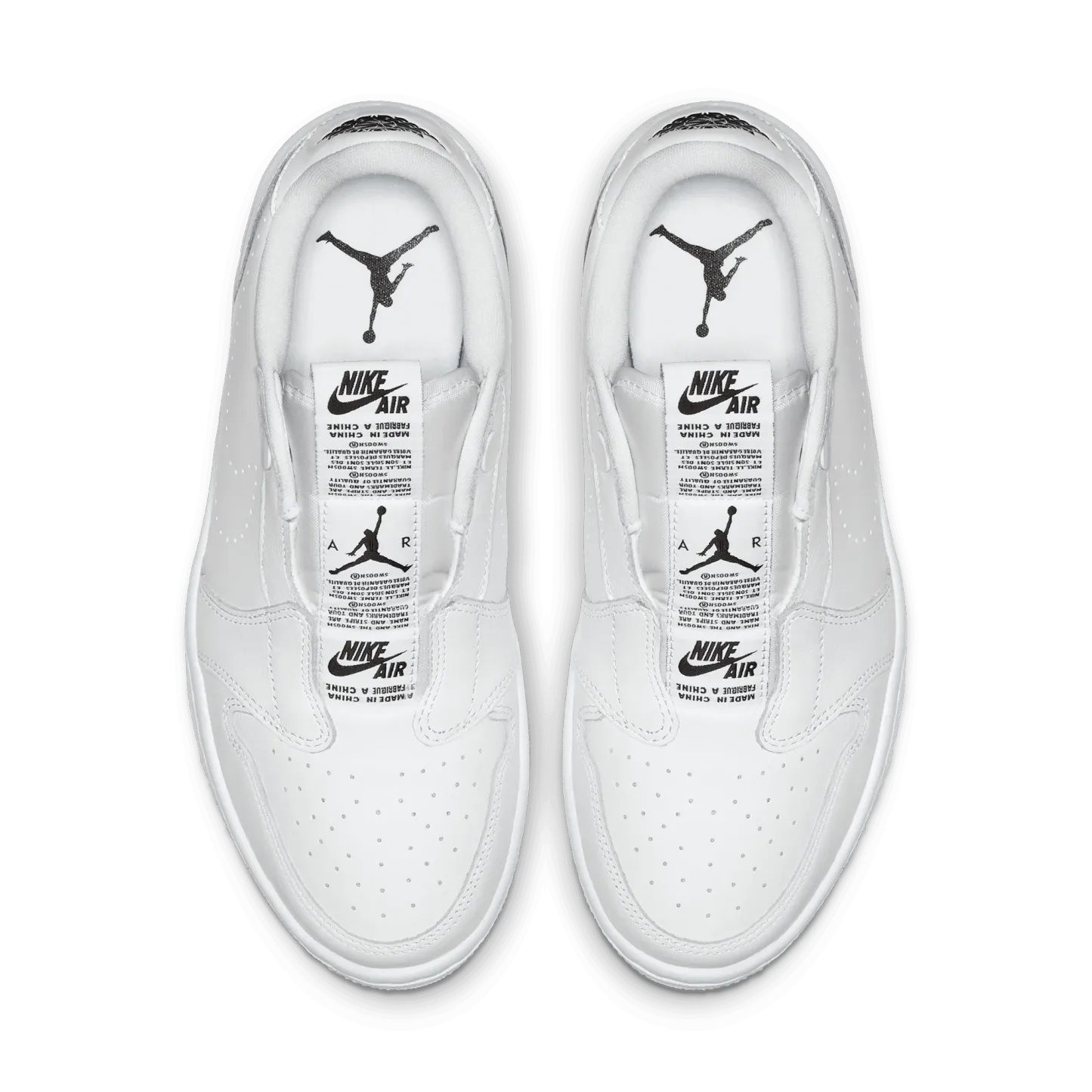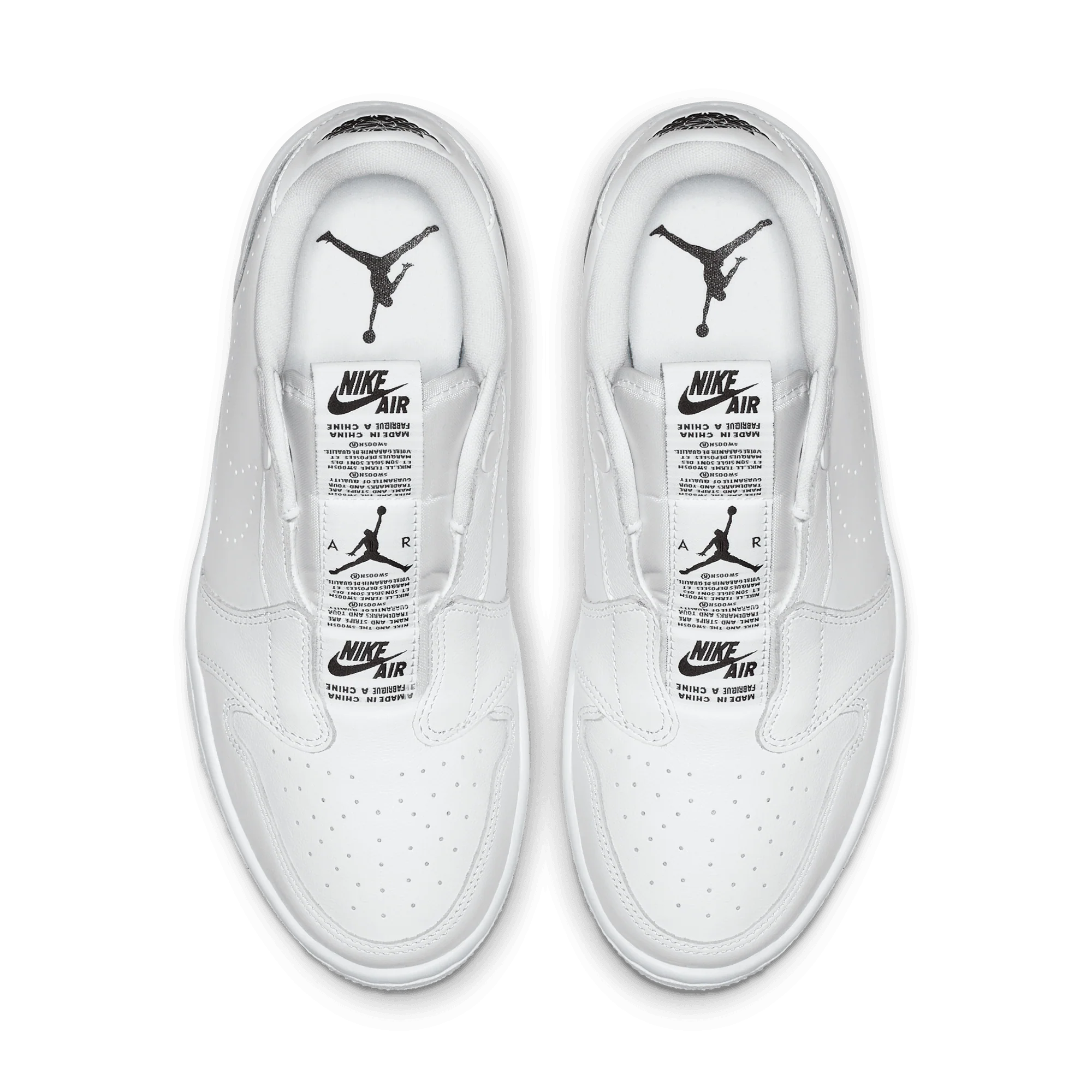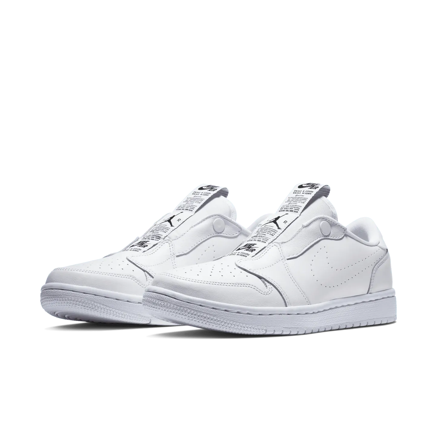 The Wmns Air Jordan 1 Low Slip 'White' is a slip-on take on Michael Jordan's first signature shoe. A women's shoe, the laceless design includes a series of branded tags down the tongue, with a perforated Swoosh on the side wall and a 'Wings' logo on the heel. Underfoot, a white Air midsole provides cushioning, giving way to a concentric outsole for traction.