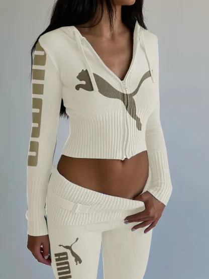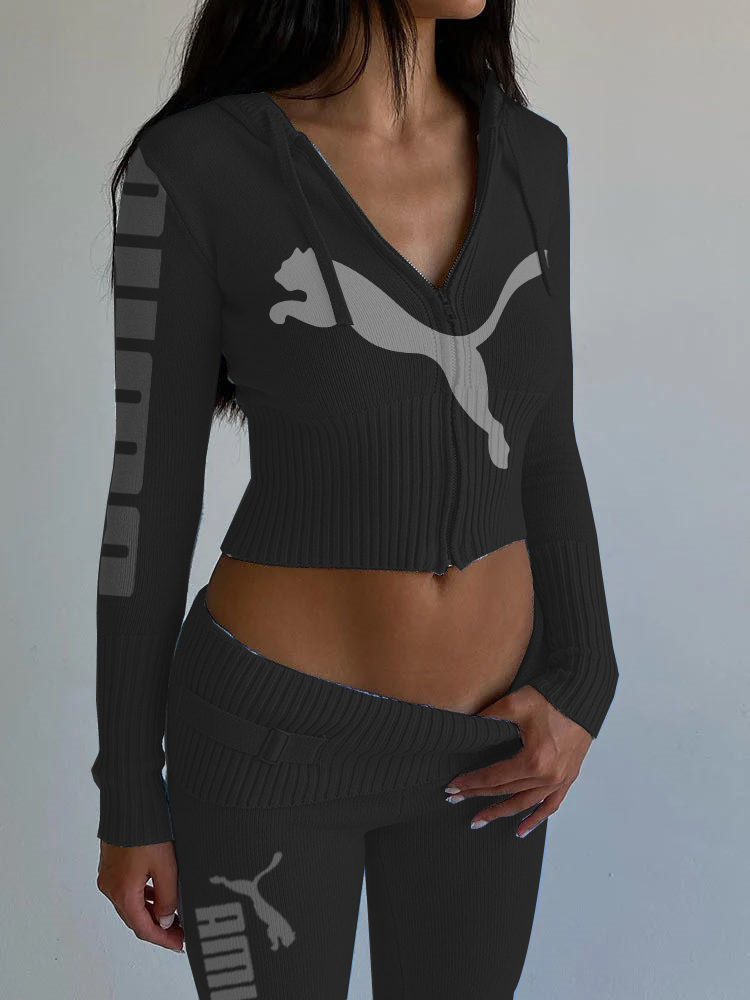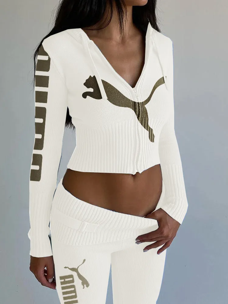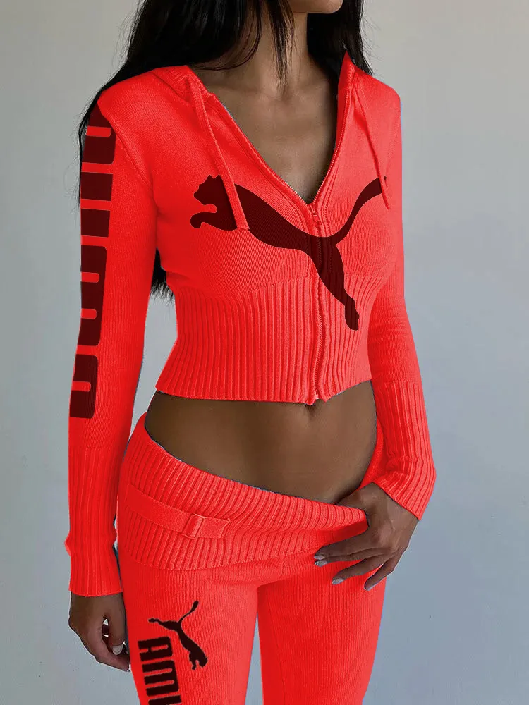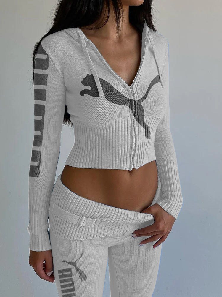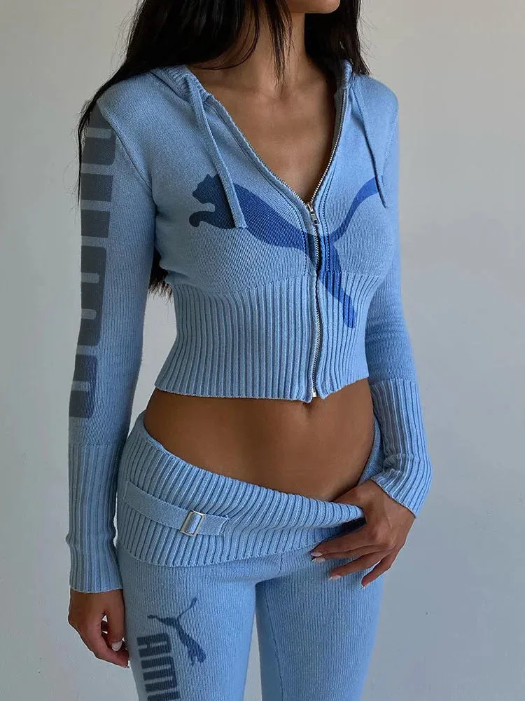Dzianinowy, modny, seksowny garnitur z wysokim stanem