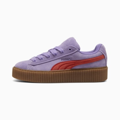 This FENTY x Creeper Phatty is wrapped in suede, with a padded and de ed Formstrip, de ed FENTY logos, gold aglets, and a stacked crepe gum sole.